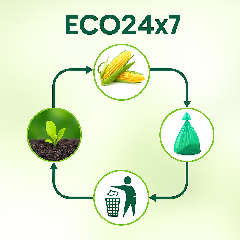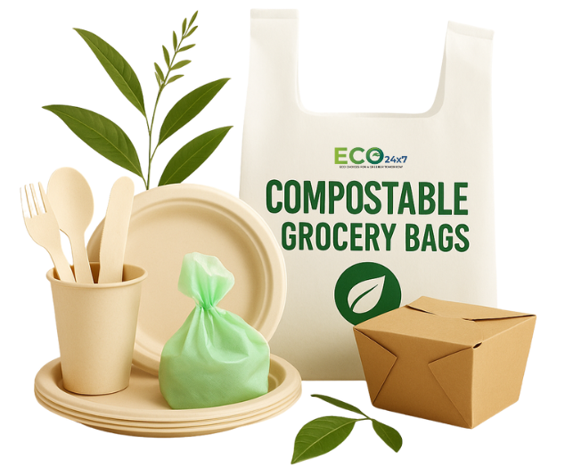 Eco24x7 is a trusted Indian brand committed to replacing single-use plastic with fully compostable alternatives. We specialize in high-quality packaging and tableware made from biodegradable, plant-based materials like corn starch.